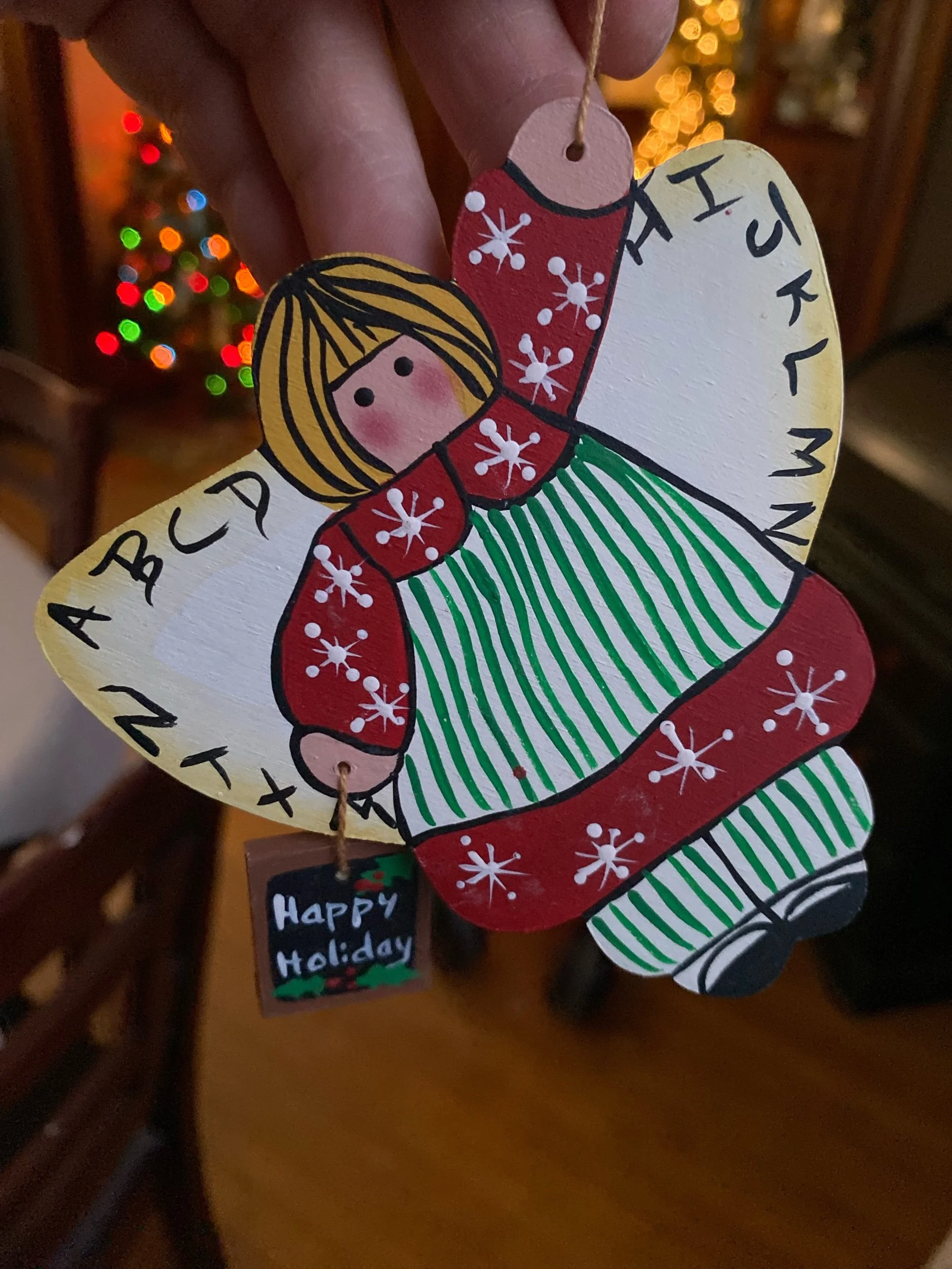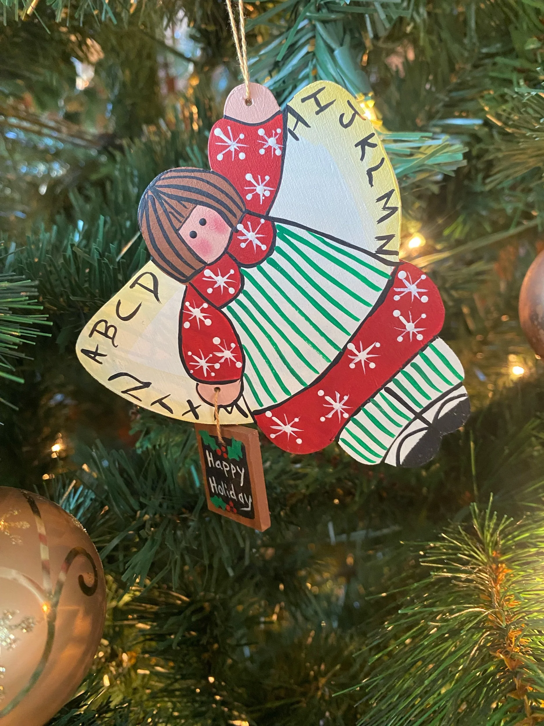 This adorable hand painted ornament is a perfect way to add whimsical to your holiday decor! This is a lightweight wood ornament that is hand painted with acrylic paints. Each ornament is hand painted and may vary from others.