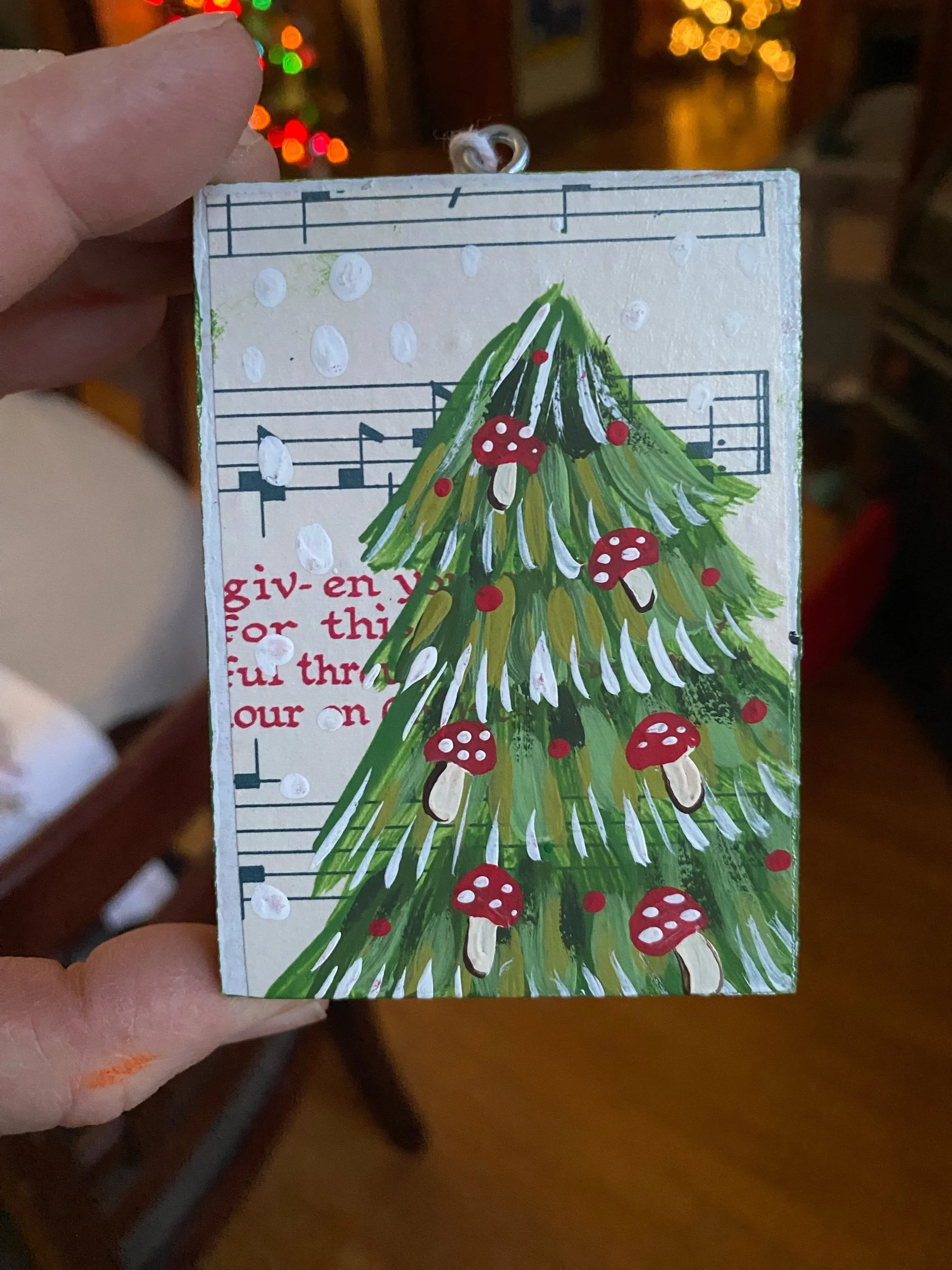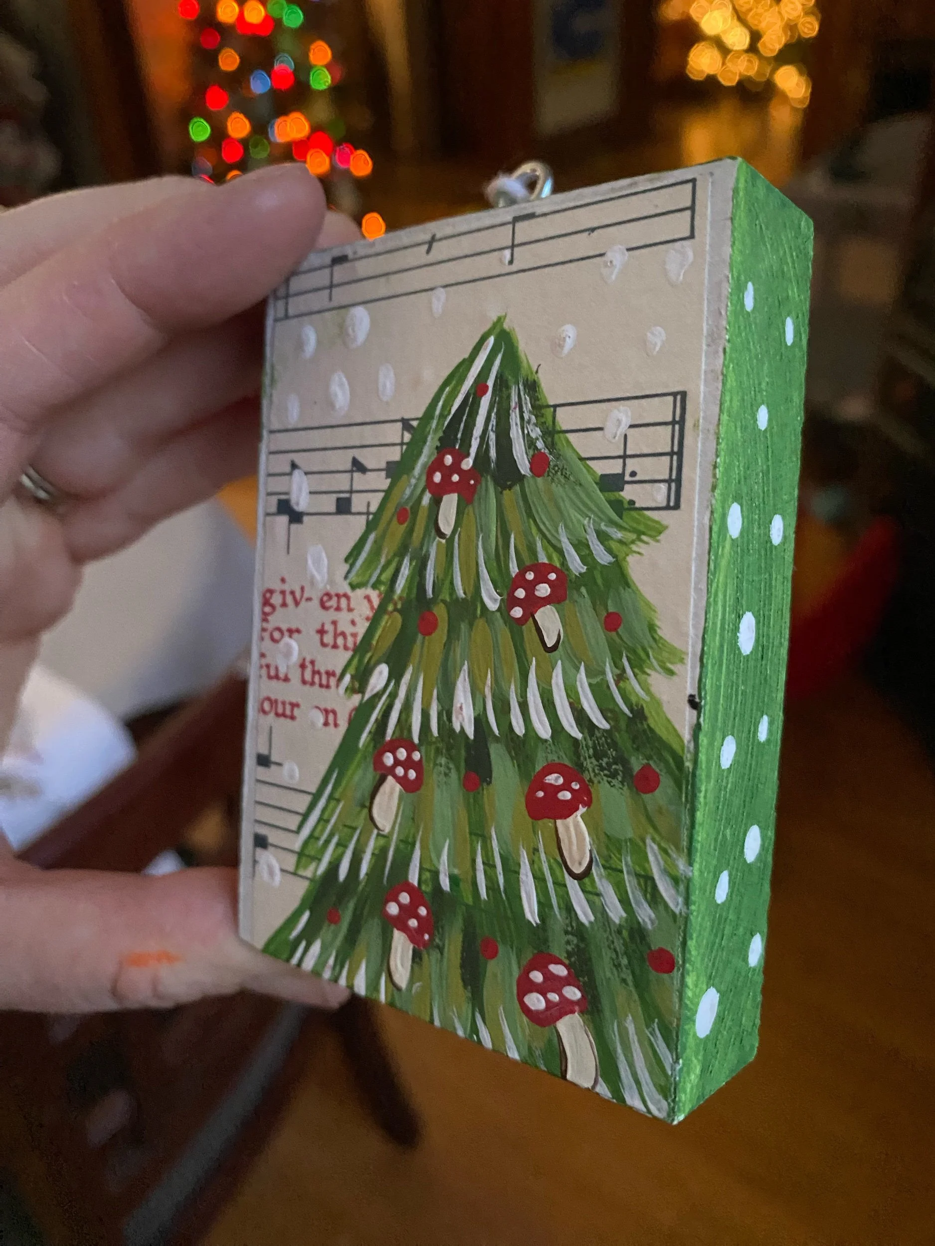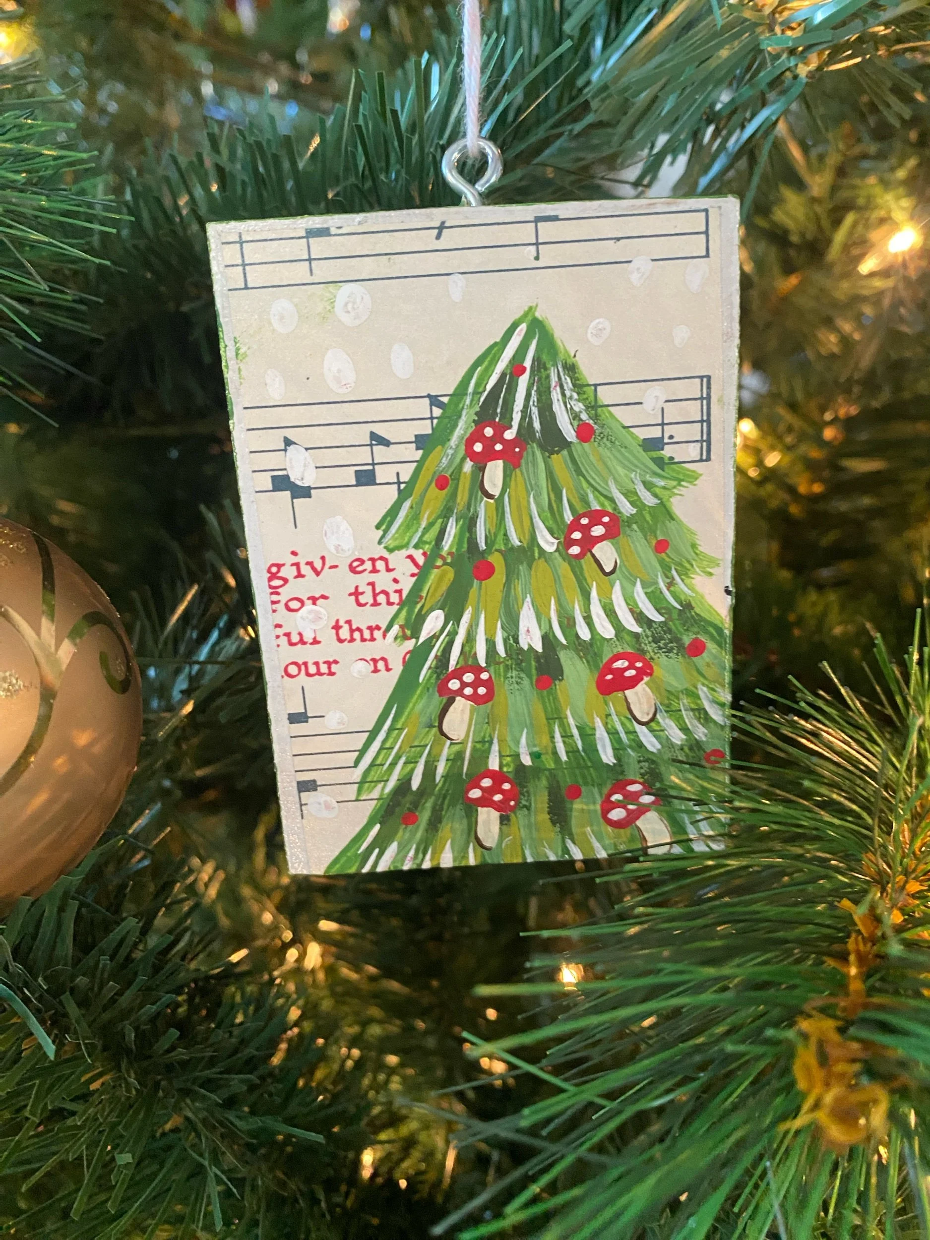 This adorable hand painted ornament is a perfect way to add whimsical to your holiday decor! This is a lightweight wood ornament that is hand painted with acrylic paints. Each ornament is hand painted and may vary from others.